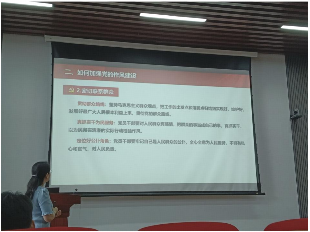 党课伊始,赵晓霞从党的作风建设重要意义切入,阐释了作风建设在新时代党的建设中的基础性作用。她指出,党的作风直接体现党的形象,关乎党群干群关系与执政根基, 必须常抓不懈、久久为功,并强调要从锤炼党性修养、密切联系群众、深化纠治 “四风” 等方面协同发力,推动作风建设走深走实。