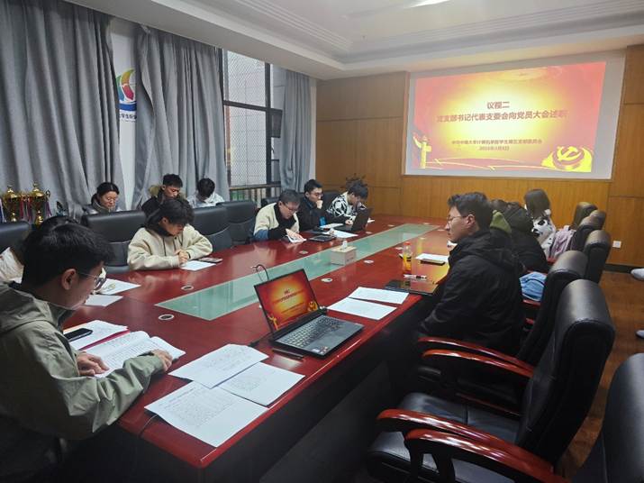随后,刘家忱同志代表支委会向党员大会对2025年度的工作进行总结。刘家忱在总结中指出,2025年度支部坚持理论学习常态化,积极落实上级各项决策与指示,组织开展了多项党日活动,有效增强了支部凝聚力。