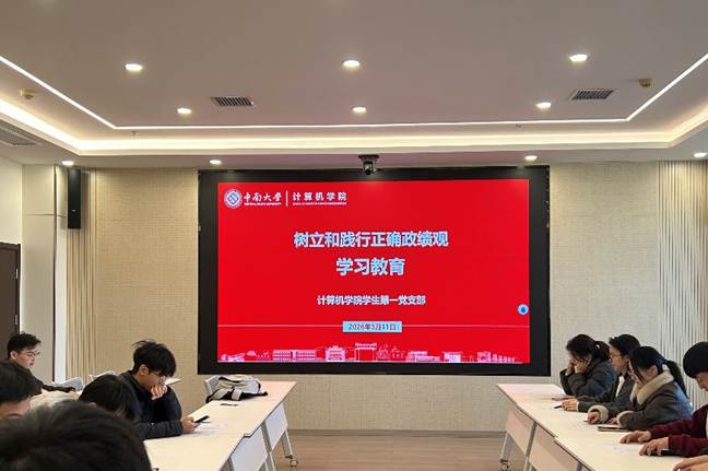 会议伊始,党支部纪检委员李熠作领学发言,围绕“树立和践行正确政绩观”开展专题学习。他讲到,员工党员要坚持求真务实,立足专业做打基础、利长远的实事,在科技自立自强、网络强国建设中担当作为。随后,党支部书记陈司宇介绍了本学期学习教育活动的具体安排,并对全体党员提出了相关要求。