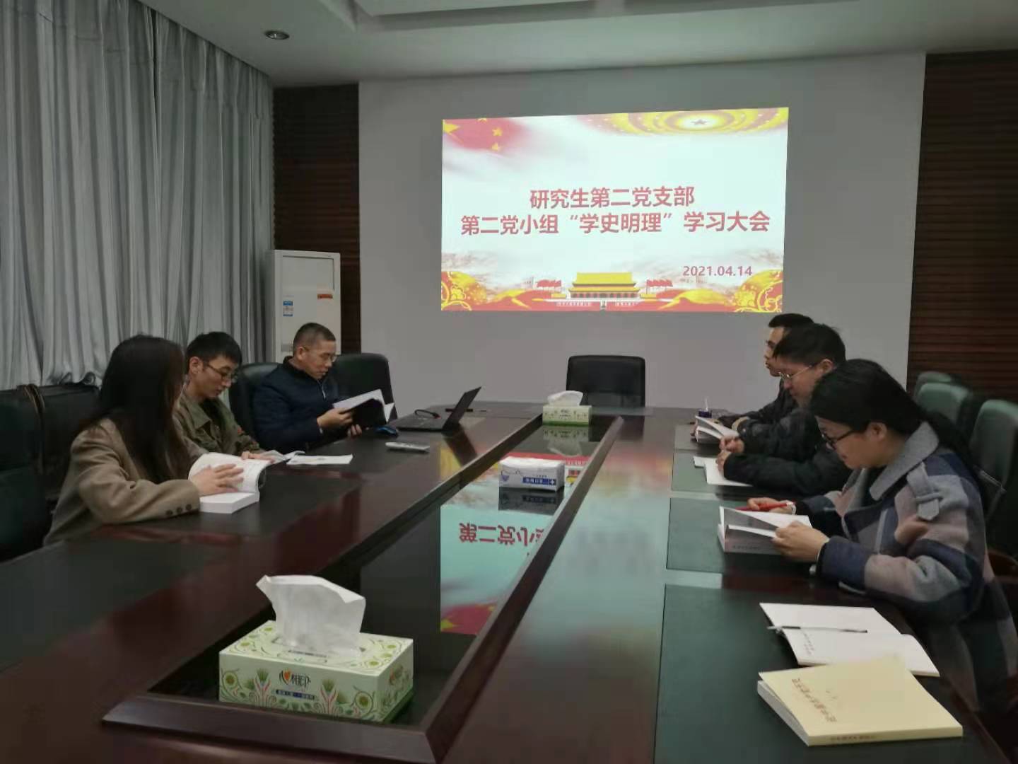 2021年4月9日到14日,william威廉中文官网研究生第二支部(以下简称为研二支部)全体同志根据对书籍的自学情况,开展“学史明理”阶段专题学习。分党小组开展“学史明理”讨论会,各小组成员根据自学情况在讨论会上积极发言,交流学习体会。