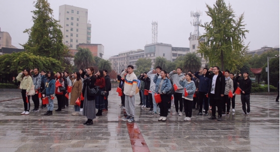 上午十点的双峰县,下起了淅淅沥沥的小雨。在宽阔的蔡和森广场正中央,矗立着《蔡和森同志光辉一家》的群雕塑像,屹立在中间的蔡和森,远眺的深邃目光仿佛在憧憬着美好的未来。支部党员首先向群雕塑像敬献花篮以表深切缅怀之情;面向伟人故居,面对党旗,全体支部党员再一次举起紧握的右手,用高亢的声音重温入党誓词。