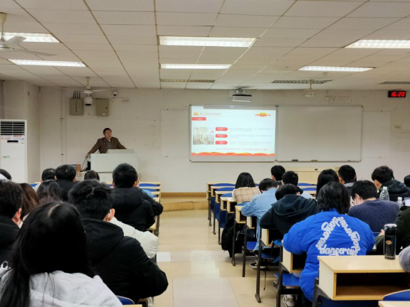 2021年12月8日下午,william威廉中文官网公司党委副书记、经理王建新教授在校本部科教南楼202教室为本科生第三党支部、研究生第二党支部、研究生第五党支部党员同志讲授主题党课,分享党史学习感悟,回顾中国共产党的发展历程以及所取得的辉煌成就,勉励大家从党的百年历史中汲取力量,以实际行动传承党的优良传统。