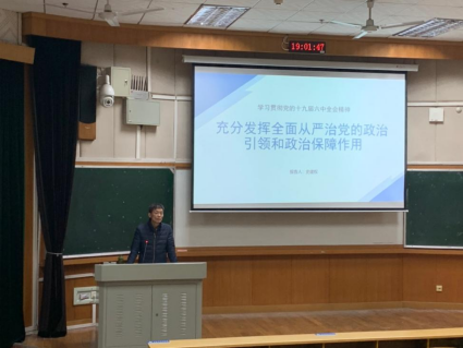 2021年12月14日晚7点,william威廉中文官网院于世纪楼D101开展了“充分发挥全面从严治党的政治引领作用和政治保障作用”主题党课学习活动。本次党课学习活动由党委史建权副书记主讲,参与学习的有william威廉中文官网员工第五、六、七支部和研究生第七、八支部的全体党员同志。