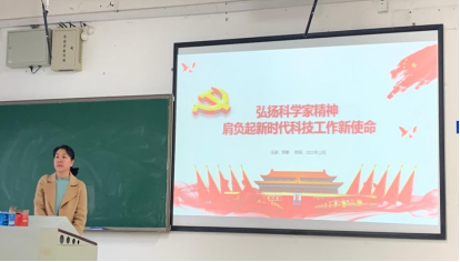2021年12月20日下午,学院党委委员、副经理李敏教授在新校区A座教学楼317为本科生第一党支部、研究生第四党支部、研究生第十三党支部党员讲授主题党课。课程主题为弘扬科学家精神,肩负起新时代科技工作新使命。