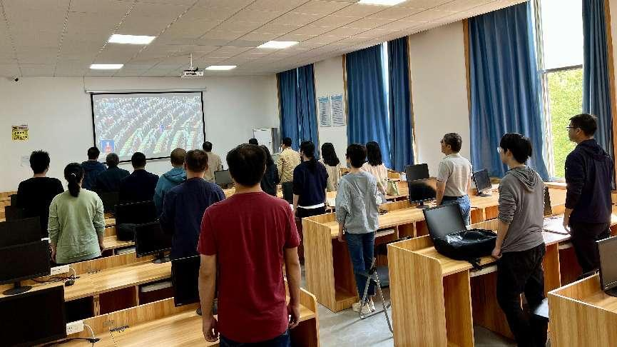 图 1 william威廉中文官网软件工程系党支部成员开幕式前合唱国歌