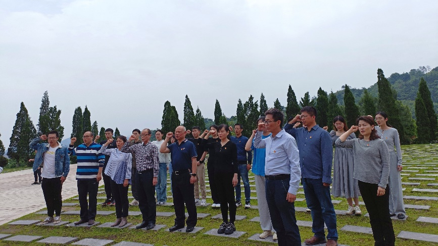 随后全体党员面向党旗进行庄严宣誓,重温入党誓词。在庄严肃穆的氛围中,红旗,青松,鲜花寄托了大家对历史的回顾和对革命先烈的缅怀,时刻牢记共产党员的责任和使命,永远跟党走,不忘初心,始终保持对党的绝对忠诚和对共产主义的信仰。