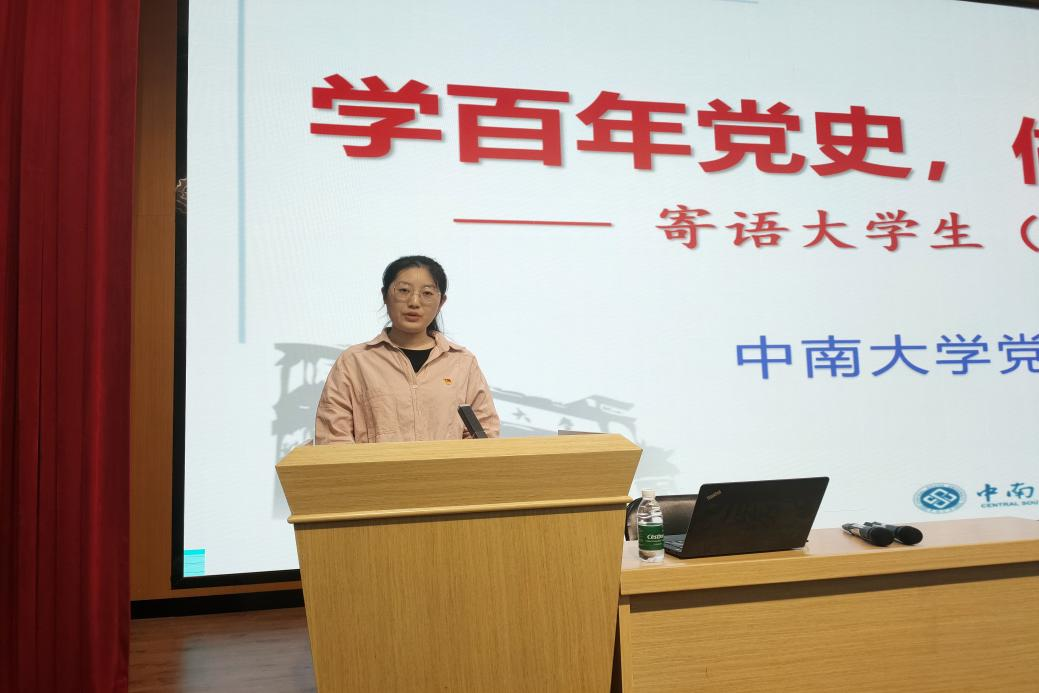 员工四支部的毕业生党员葛佳欣同志代表2023届毕业生党员发言,她回顾了自己在中南两年的入党流程和入党以来的思想转变和实践收获,推己及人,与毕业生共勉,希望能在今后的学习、生活和工作中将理论与实践相结合,不断提升党性修养,提高工作积极性和解决疑难问题的能力,努力成为一名优秀的共产党员。既有仰望星空的心境,又拥有脚踏实地的定力,坚信“春种一粒粟,秋收万颗子”的道理,沉稳踏实地走好人生的每一段旅程。
