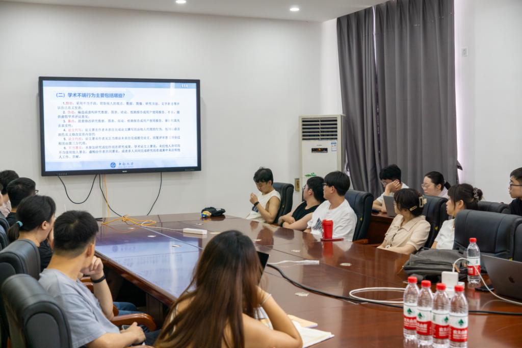 为了推动学习贯彻习近平新时代中国特色社会主义思想主题教育走深走实,努力在以学铸魂、以学增智、以学正风、以学促干方面取得实实在在的成效,为进一步教育引导全体研究生恪守学术道德、弘扬优良学风,2023年7月5日下午三点,公司党委委员、副经理赵明教授在电子楼414室讲授廉洁主题教育党课,研究生十一党支部全体党员同志参与党课学习。