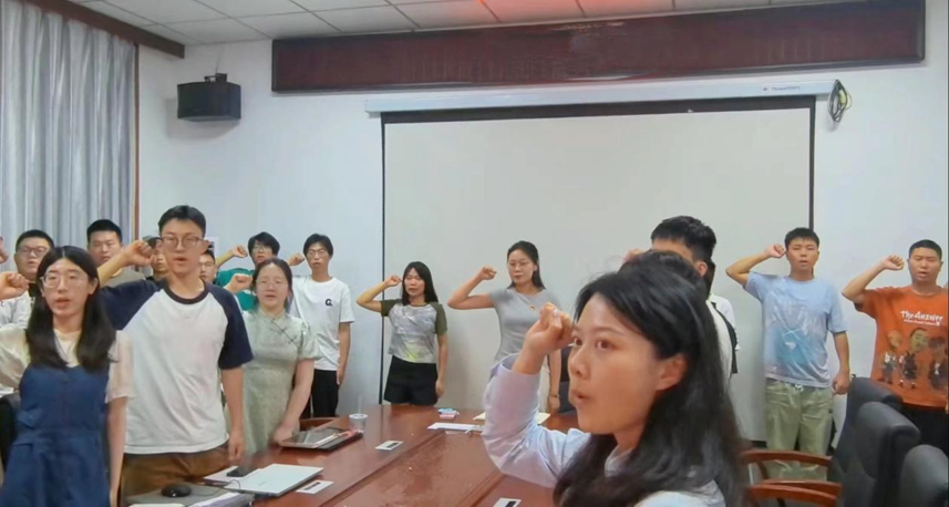 最后,支部全体党员重温入党誓词。面对鲜艳的党旗,由支部书记宋晓萌领誓,全体党员紧握右拳跟誓,一句句铿锵有力的承诺,一声声发自肺腑的誓言,激荡着每个党员的思想灵魂,唤醒着每个党员的入党初心。