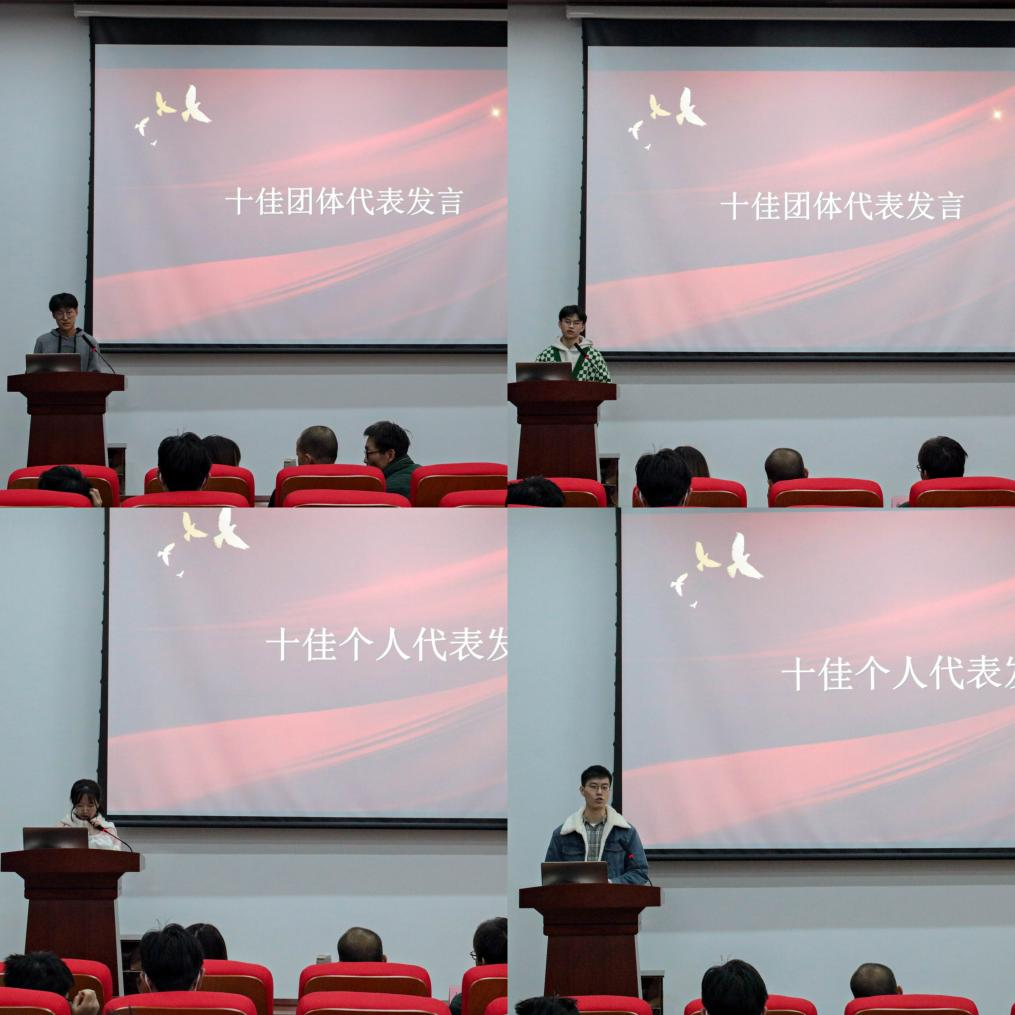 罗甜同学作为十佳个人代表进行发言。罗甜同学从自身实际出发,分享自己进入大学以来的心路历程以及个人学习经验,她重点分享了要追求学习质量和“不仅要低头学习,更应该抬头看世界”。十佳个人代表蔡冠宇,已保研至清华软件学院,他就“学习质量与学习时间和学习效率强相关,二者缺一不可”进行了分享。同时,蔡冠宇讲到,我们身处于985双一流a类高校,起点相对较高,但是希望同学们能有更高的目标,在未来和top2、华五、c9高校的员工的竞争中也同样能保持竞争力。