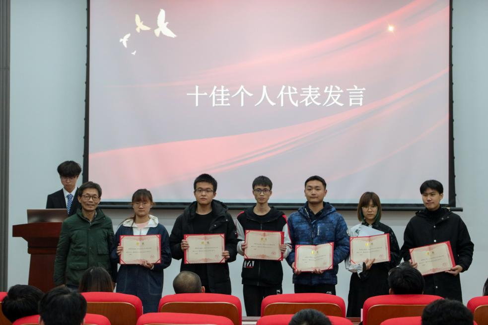 紧接着主持人唐义丰对三十佳评比活动细则进行了详细介绍,并进行上一届三十佳评比颁奖仪式,由学院老师为获得“十佳班级”、“十佳团体”以及“十佳个人”荣誉的集体和个人颁发奖状。