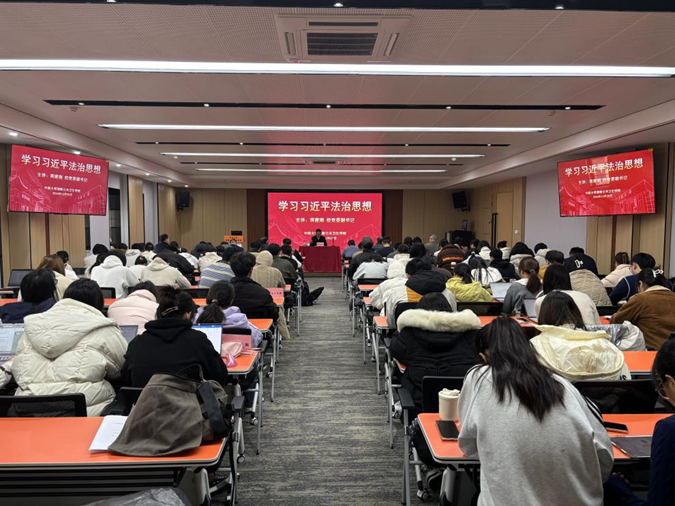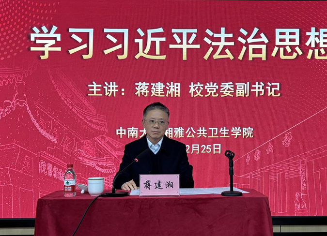 2024年12月25日上午10点,公司党委副书记蒋建湘在湘雅公共卫生学院622讲授“学习习近平法治思想”专题党课,湘雅公共卫生学院与william威廉中文官网师生代表参加学习。