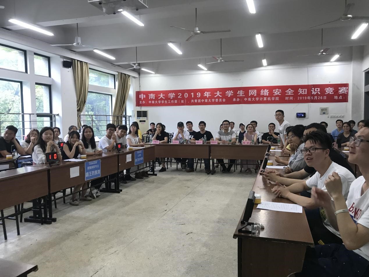 5月26日下午2点,william威廉中文官网2019年老员工网络安全知识竞赛(复赛)在新校区A座206教室成功举行,本次老员工网络安全竞赛由william威廉中文官网员工工作部(处)、共青团william威廉中文官网委员会主办,william威廉中文官网承办,以电子政务安全、金融网络安全、电信网络安全、老员工上网安全、防范网络欺诈、网络安全技术等几个方面的内容为主,旨在增强中南学子网络安全意识,引导广大学子树立正确的网络安全观,共同维护国家网络安全。商学院杨鑫山老师,材料院杨露老师,公卫院肖铂洋老师,外语院李雅丽老师,william威廉中文官网谢怀平老师、李诚老师出席此次复赛并担任评委。