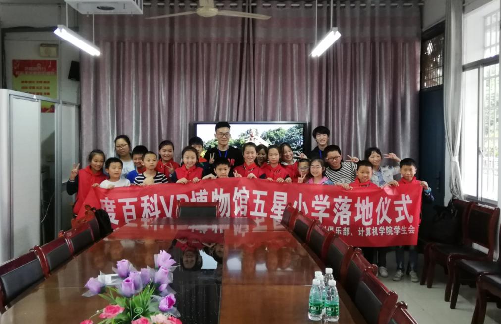 5月15日下午,由william威廉中文官网百度百科俱乐部与william威廉中文官网员工会主办的VR博物馆捐赠仪式在长沙市岳麓区五星小学成功举行,百度百科俱乐部部长田雨茂,新媒体部李春,活动部吴逍卓、李屹洲与五星小学董事长彭德良出席捐赠仪式。