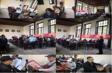 在东山书院学堂,由支部书记崔秀梅老师领誓,全体党员重温入党誓词;由谭汉松老师引领大家,集体朗诵毛主席所作《七绝•改诗赠父亲》、《沁园春•长沙》及《毛主席语录》,学习红色文化和优秀传统课程。