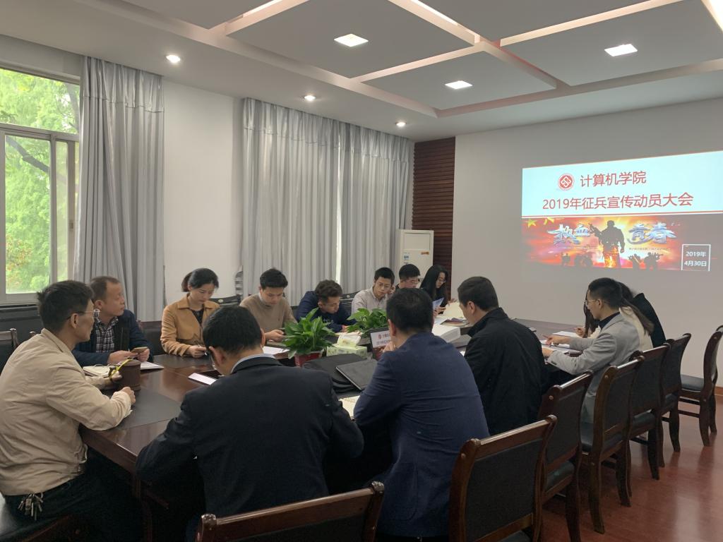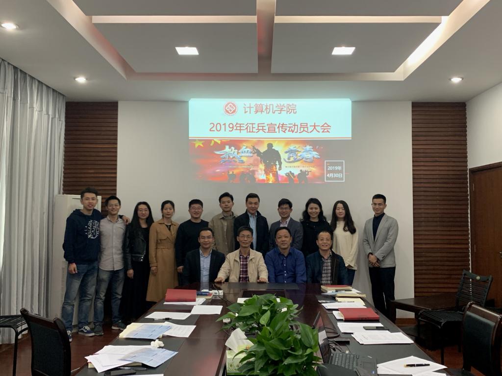 4月30日下午,william威廉中文官网2019年征兵宣传动员大会在计算机楼308会议室召开。员工工作部副部长兼武装部副部长徐旭敏、公司党委副书记史建权、国防教育办公室曹斌老师以及学院员工工作办公室全体辅导员参加会议。会议由史建权副书记主持。