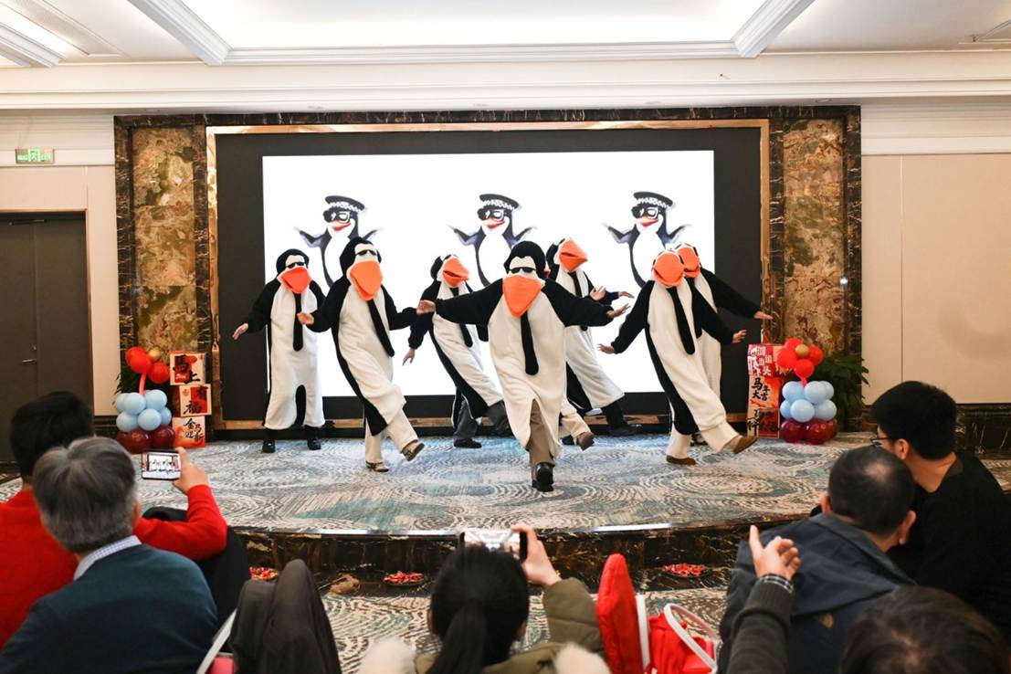 公司领导带来的三句半表演幽默风趣,用接地气的台词盘点学院年度亮点,瞬间点燃全场氛围;舞蹈《拜新年》以灵动欢快的舞步传递着新春的喜庆;合唱《红豆》深情婉转,数据系全体老师带来的合唱《朋友》则展现了同事间的深厚情谊;诗朗诵《青春万岁》激情澎湃,诉说着师生们不负韶华的奋进姿态;新进教师合唱的《不忘初心》,彰显了教育工作者立德树人的使命担当;全体辅导员带来的《高雅人士舞》创意十足,展现了学工队伍的活力与风采;实验中心的大合唱《信息大楼,师生情》唱出了学院大家庭的温暖与凝聚力;大数据研究院的舞蹈《越来越好》将演出推向高潮,寓意学院未来蒸蒸日上。
