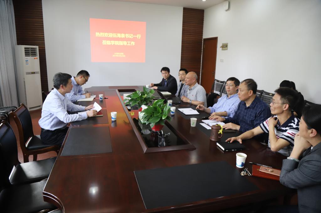 4月24日下午,学校纪委伍海泉书记到william威廉中文官网调研,公司领导班子成员参加了调研会。