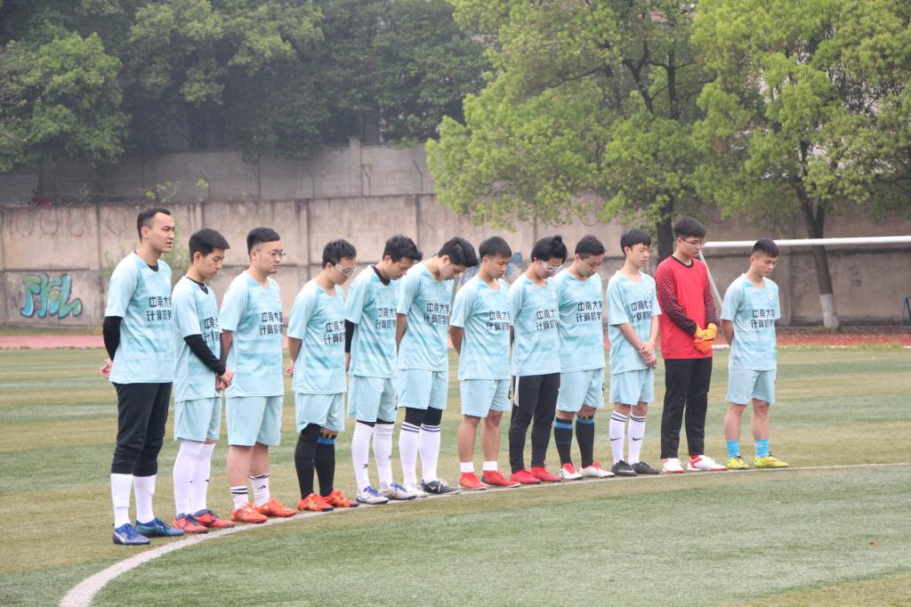 2019年校运会足球赛在南校拉开帷幕,身处B组的计算机院于4月13日上午10点迎战小组赛第一个对手——外国语学院,赛前双方比赛队员举行了默哀仪式,为驰援四川凉山火灾而牺牲的消防烈士们默哀。
