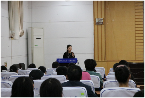 随后,杨雨教授以“知我者,谓我心忧——追寻诗人,回到诗意”为主题展开了一场沉浸于诗词的心灵之旅。从“什么是诗?什么是诗人?什么是诗意?”三个基本问题出发,深入浅出地讲解了汉语的起源和语音语调的相关知识。结合对多篇诗词的讲解,她亲自用长沙话、粤语唱出了妇孺皆知的唐诗《静夜思》。语音虽同,音调不同,离乡之情悄然渗入人心。之后,杨教授又结合自身曾经录制节目的所见所闻,从边关士兵与战马之情的角度讲述了“执子之手,与子偕老”的诗经本意,令人耳目一新。最后,杨雨教授以“人如落叶般瘦”的日常调侃经历出发,向大家展示了一首首现代诗在身边诞生的实例,她呼吁我们不论行业,忽视年龄,皆可参与进诗歌的创作与欣赏之中,寓情于诗歌之中,与千万心灵产生共鸣。
