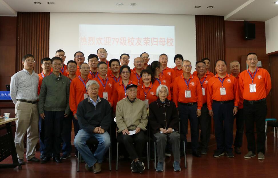 全体学院领导和79级员工在会议室中心合影留念。员工们统一身着橙色服装,脸上洋溢着笑容。合影后,开展员工之间,员工与员工之间的自由交流讨论,员工们对学弟学妹寄予殷切的希望并根据自身的职业生涯发展给学弟学妹们给出宝贵的建议。他们充满着年轻人的激情和活力,变化的是时间,不变的是中南学子身上永恒的奋斗精神。