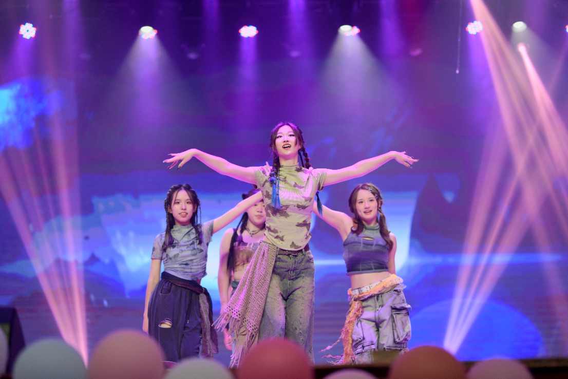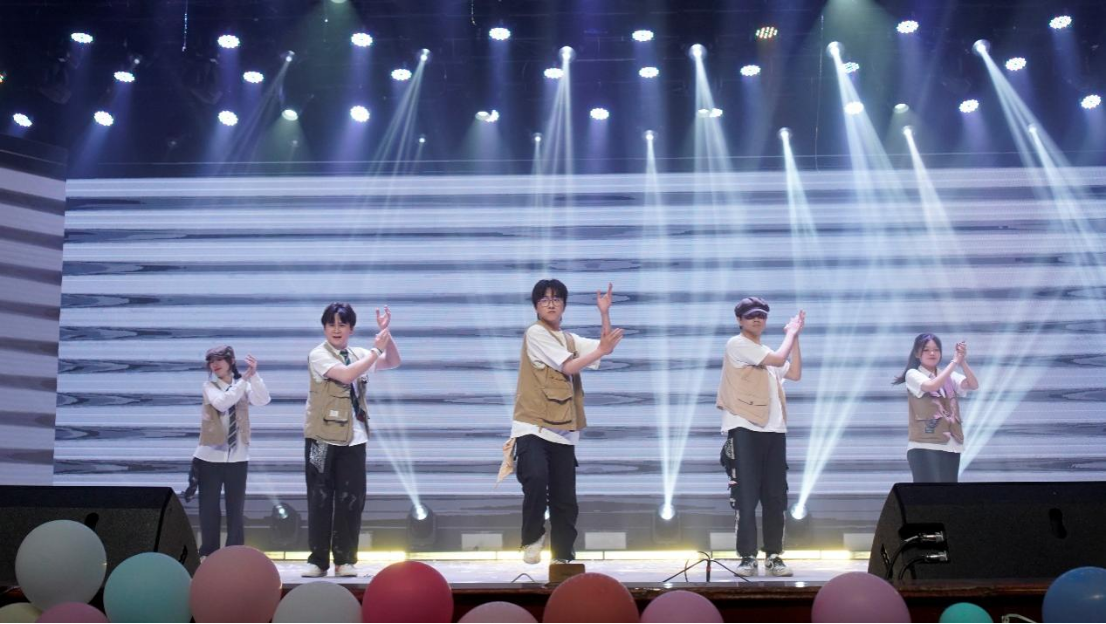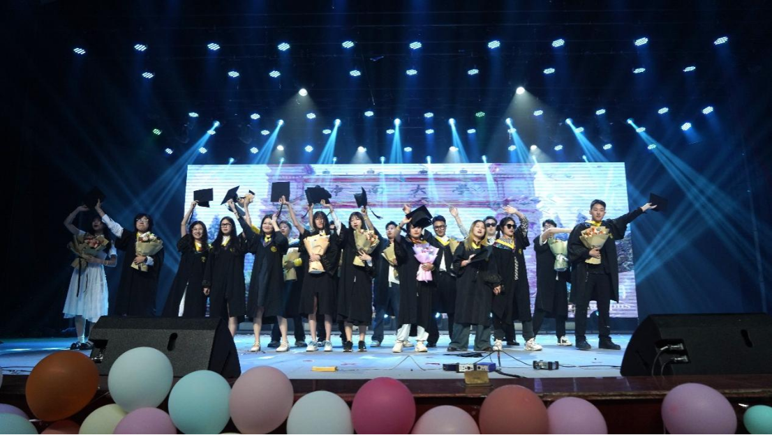 “合成甜虾”乐队演绎的《唱支摇滚给你听》,表达了对独立自由的追求,唱响生活的热爱。舞月草locking队的舞蹈《Let‘s lol》节奏明快、轻松,让台下的老师和同学都忍不住跟着节拍摇摆。紧随其后的音乐剧《We don’t talk about Bruno》则由城南舅事团队表演,他们将歌曲与舞蹈交织,寄语毕业生勇敢面对未来的未知,在新的旅程中勇往直前。
