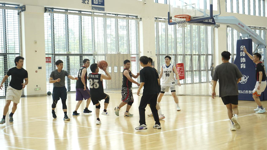 本次比赛共有三支队伍参加:本科毕业生队、硕士毕业生队和教师篮球队三支队伍,分为六节进行,第一节和第六节为34分制,第二至第四节采取25分制,最终总比分定格在168分,蕴含了学院对2024届毕业生的美好祝愿。