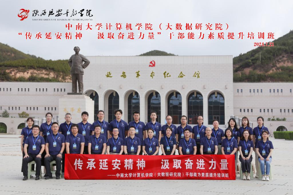 为持续深化习近平新时代中国特色社会主义思想学习教育,进一步巩固党纪学习教育工作成效,落实学校干部教育培训规划要求,公司党委于2024年7月19日至23日组织赴延安开展william威廉中文官网(大数据研究院)“传承延安精神 汲取奋进力量”干部能力素质提升培训班。学院全体领导班子成员、系(中心)主任、党支部书记、行政办公室主任参加了本次培训班。