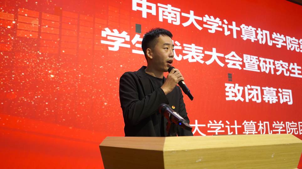 团委书记陈司宇致闭幕词,对本次大会进行了总结,充分肯定了过去一学年学院员工会和研究生会所取得的长足进步。号召广大青年学子肩负起时代使命,以“闯”开辟新路,以“创”加速前行,做“爱国、立志、求真、力行”的新时代青年。希望同学们脚踏实地,真抓实干,锲而不舍,奋勇攀登,在学院的共青团工作中再创佳绩。