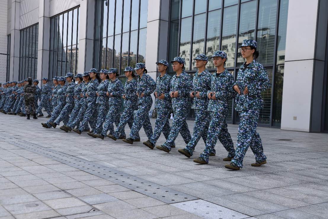 随后,教官开始教授齐步走的技巧。从步伐的幅度到手臂的摆动,每一个细节都经过反复练习和纠正。同学们在操场上整齐划一地行走,每一步都显得那么有力而坚定。随着练习的不断深入,大家的摆臂和动作都变得更加规范,整体效果也越来越好。