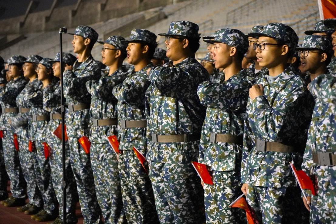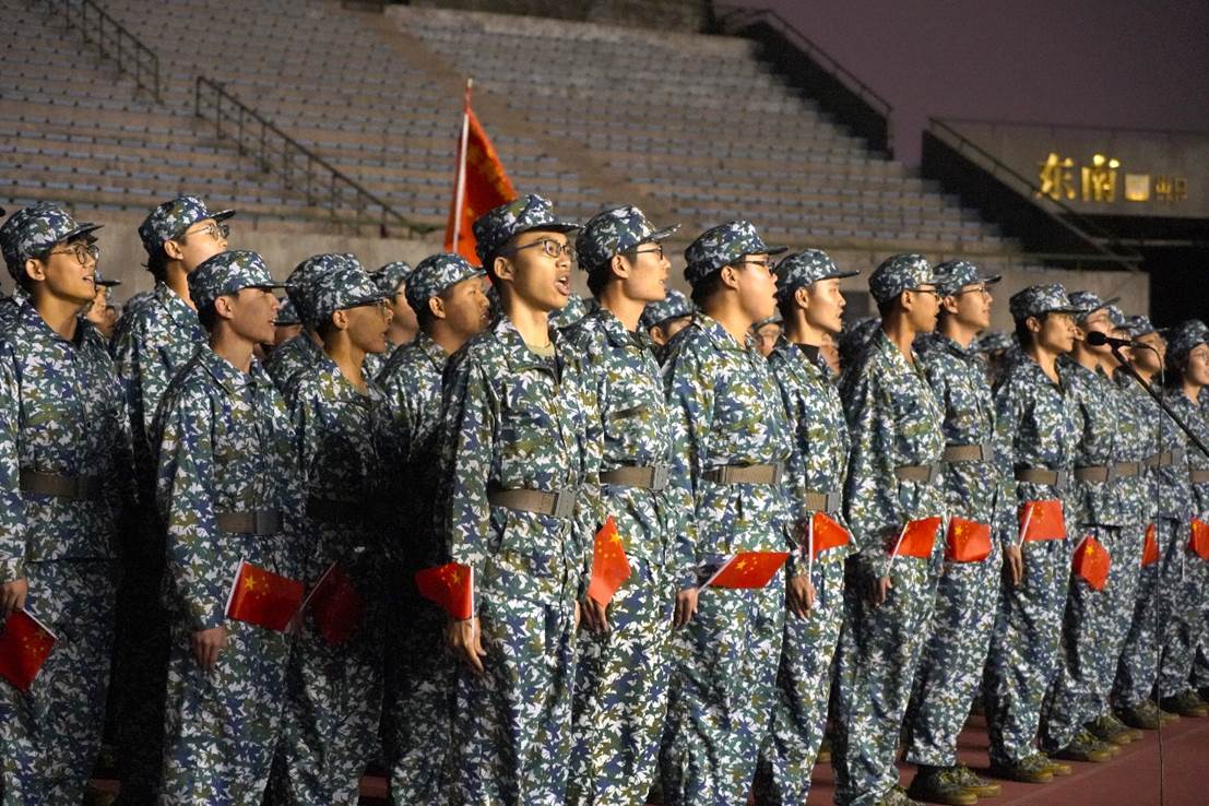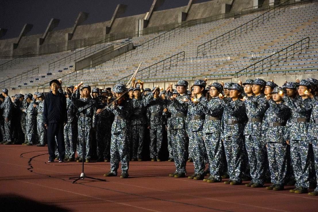 比赛正式开始前,在教官和指导员的组织下,william威廉中文官网全体军训新生提前到达场地进行排练。同学们互相提醒歌词细节、音律曲调、动作要领,在一遍遍的练习中寻找最佳的参赛状态。彼此顾盼,神色肃然,斗志高昂,传递出全力以赴唱响红歌的决心。