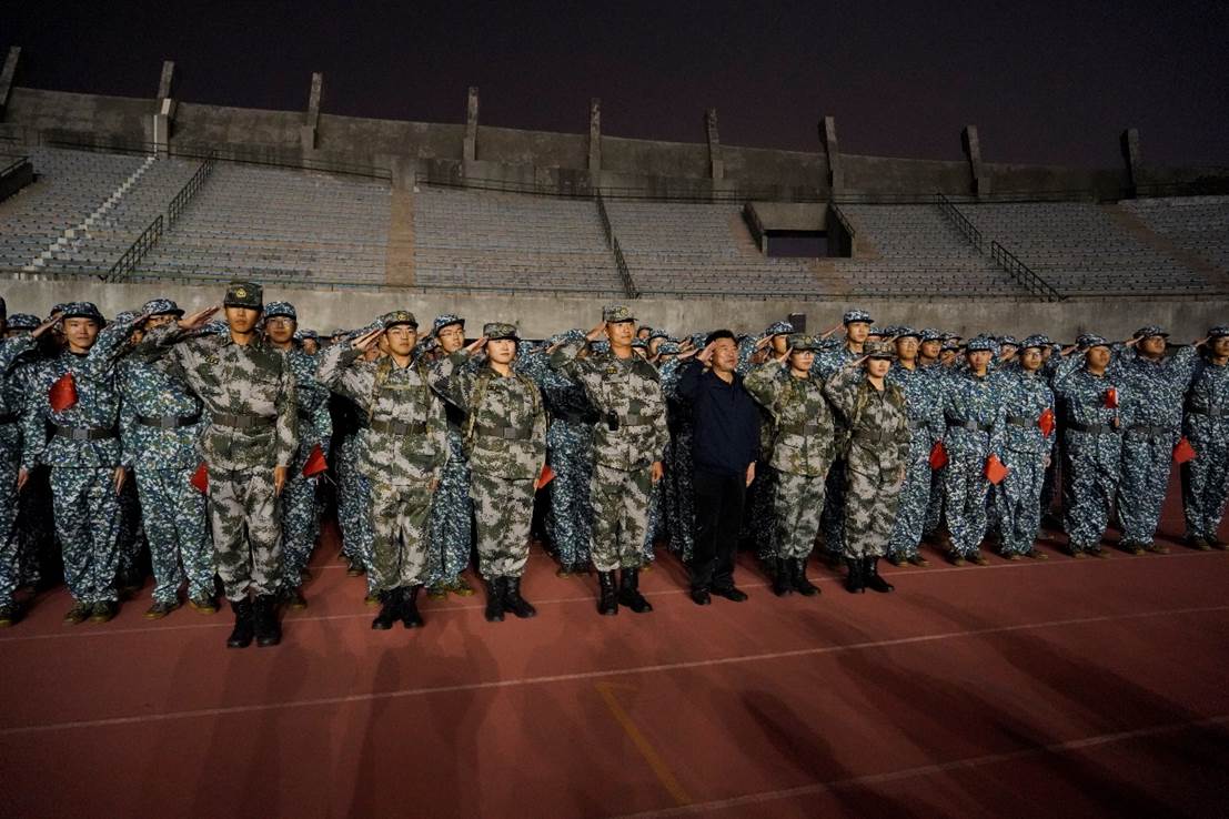 豪迈的歌声落下,公司党委副书记王新辉组织新生诵读诗歌。声起之处如洪钟震耳,气势磅礴。诗歌忆往昔英烈之举,感今日和平不易,锵锵然若金戈铁马,激昂慷慨。诗中亦有王新辉书记对全体军训新生的寄许,希望我们感先辈之志,承先辈之怀,继先辈之业,以红歌唱响时代之音。