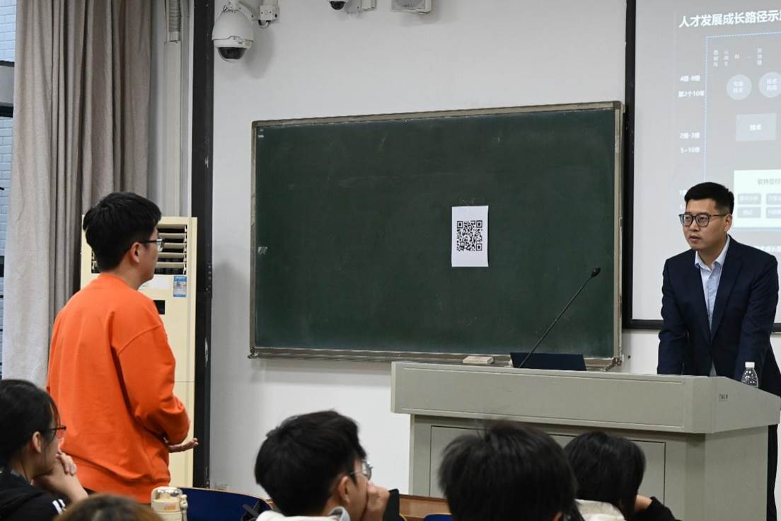 最后,华为招聘团队针对同学们围绕实习岗位、实习能力需求、学业规划等方面所提出的一系列问题,给予了详尽的解答。在互动环节中,同学们争先咨询,招聘团队积极回应,共同营造了一幅生动和谐的交流图景。