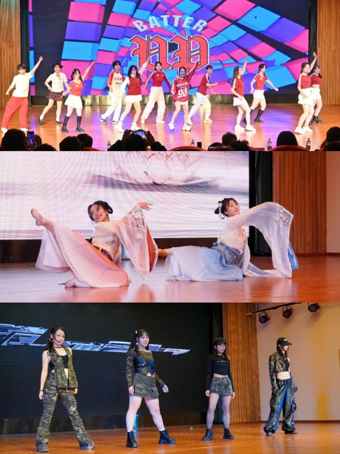 院舞蹈队的《Batter up》活力四射,节奏感十足,每一个音符都蕴含着不屈的意志,每一个动作都展现着对梦想的执着追求;卫子晨和杜晨洁的《锦鲤抄》带着古风之美,以灵动之姿穿梭于碧波之间,以优雅的舞姿讲述了一段梦幻的时空之旅;宗珈亦团队的《Whiplash》则以劲爆的节奏,激情的节拍,强烈的冲击力点燃全场。