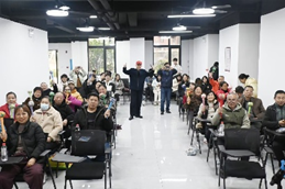 完成艾草锤的制作后,同学们继续向爷爷奶奶们展现了传统气功“八段锦”的动作流程。舒缓的旋律、念白、动作,让大家的身心得以舒缓。“两手托天理三焦”调整气血,“左右开弓似射雕”调理心肺,“调理脾胃须单举”促进消化,跟随着同学们的动作,爷爷奶奶们也一遍一遍地学习,感受着气血的调和,也感受着传统文化的魅力。