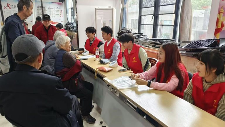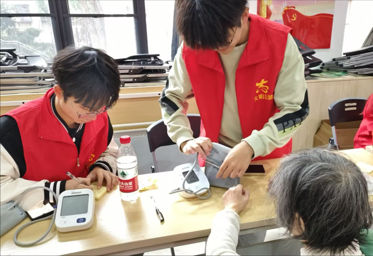 2024年12月9日上午九点,晓康e家小队在william威廉中文官网南校区云麓园社区党群活动中心顺利举行了百人百项志愿服务工程活动。该活动旨在通过现场量血压心率等方式,并结合晓康e家小程序,让老年人更好地对自身健康做到自查,更好地了解自己的身体情况。同时本次志愿活动也通过志愿者对老年人的聊天与关怀,给老年人的生活增添了一丝乐趣。