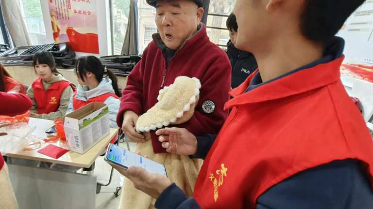 志愿者向老人讲解晓康e家小程序,提醒老人平时要多注意并记录自己的健康情况,做到将健康管理的重心从治疗转向预防,从人体疼痛疾病自查与膳食营养平衡计划出发,为其提供一些健康管理建议;同时志愿者为其介绍了专家问诊功能,以便老人可以在了解自身情况后更便捷地进行专业问诊,为其提供全方位的健康服务。