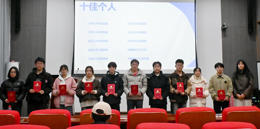 会议伊始,学服主席吴雪琳对评比活动的参与情况进行了简要介绍。此次评比活动自启动以来,得到了全院同学的积极响应和广泛参与,共收到来自21、22、23级总计205份申请表。经自主申报、学院审核,从学风建设、学科竞赛和个人荣誉等方面进行评分,横向评比出计科T2301等十佳学风优秀班级、计科2202刘新珉同学等十佳学业优秀个人和“山河大院”等十佳学风优秀团体。
