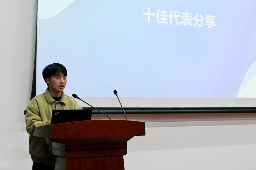 在颁奖环节之后,十佳代表吴佳俊、刘新珉进行分享。他们分享了自己在学风建设中的经验和心得,表达了对学院和老师的感激之情,同时也表示将继续努力,为学院的学风建设贡献自己的力量。