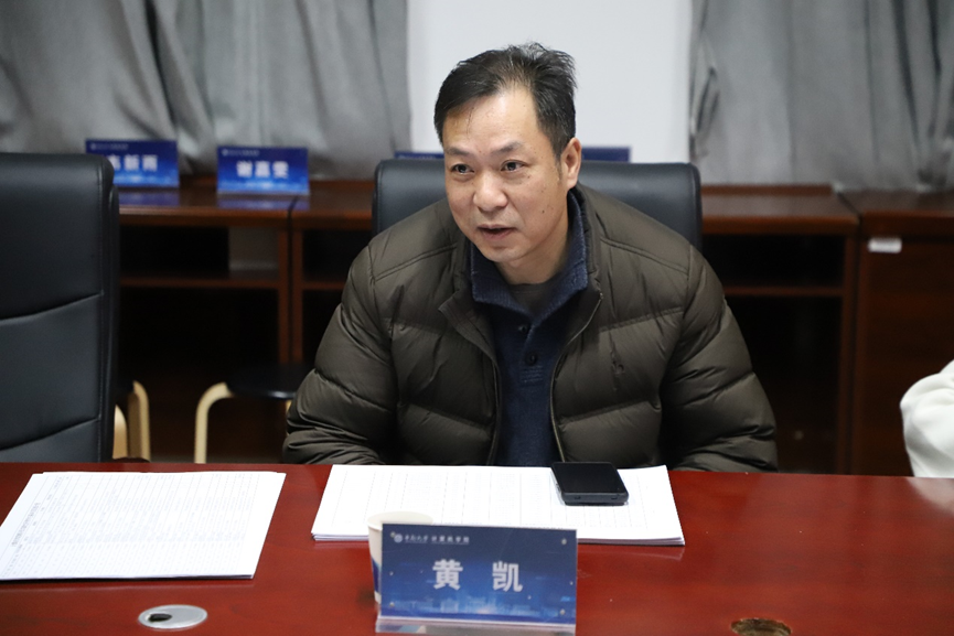 王新辉对黄凯一行的到来表示热烈欢迎,并对学工部长期以来的指导和支持表示衷心感谢。他表示,学院自第一轮践行“一线规则”督查以来,继续严格推进贯彻落实“一线原则”,积极通过“学工日志”小程序开展查课查寝谈心谈话等一线工作,始终坚持围绕员工、关心员工、服务员工,着力防范化解风险隐患,推动员工工作高质量发展。