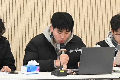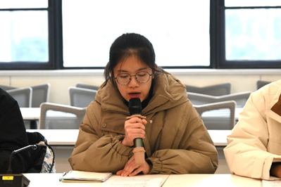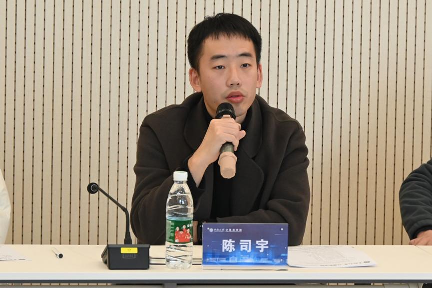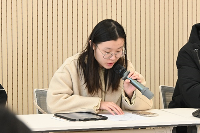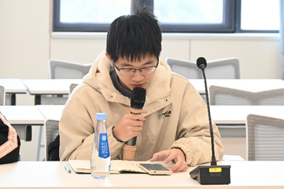 陈司宇进行年终总结及工作展望,他肯定了过去一年里院团学研组织各部门取得的工作成果,并从内部建设和专业素养两方面给出建议,希望员工干部们多总结、多实践、多动笔,充分调动员工积极性。他指出,假期在即,可以利用好寒假的时间提前开展工作部署,对标学校工作要求,开展专门化、特色化活动。