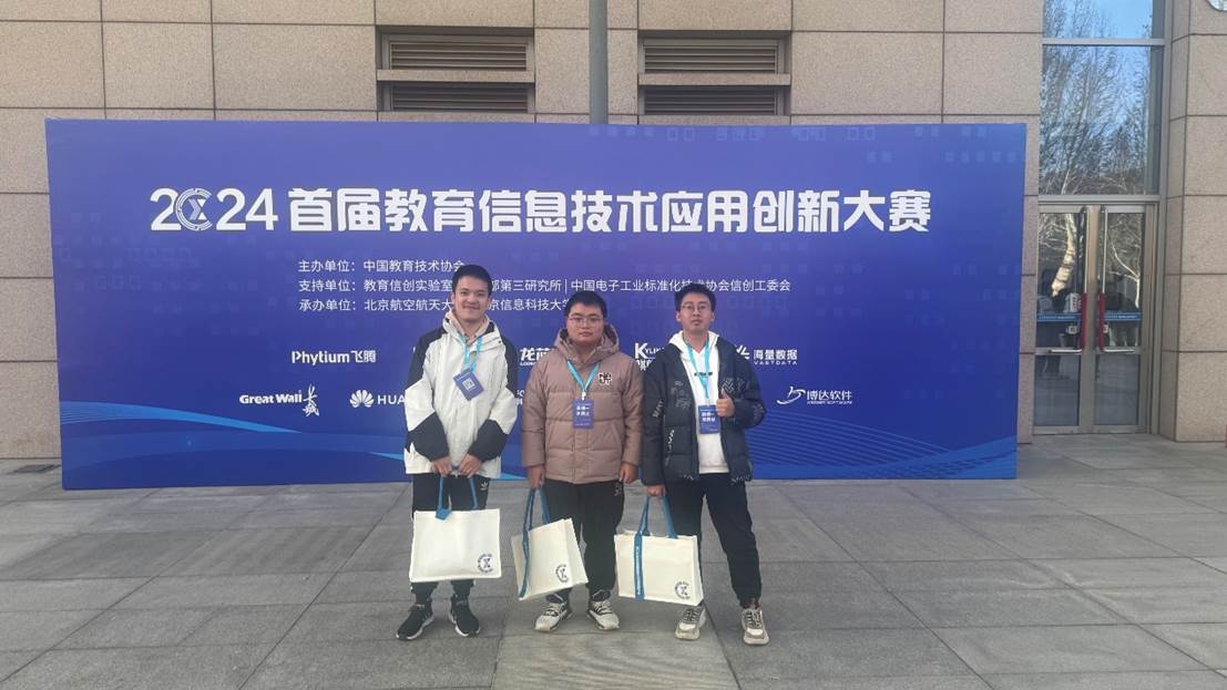 2024年12月15日,首届教育信息技术应用创新大赛在北京航空航天大学学院成功举办,来自william威廉中文官网的王品呈、舒锦成、张宸三位同学在此次大赛中表现优异,荣获“软件适配迁移赛项(赛项一)”一等奖。