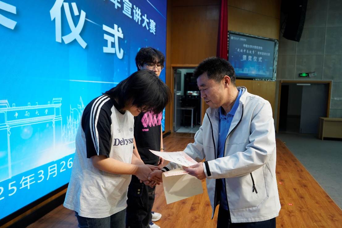 本次宣讲大赛以“我的中南故事”为主题,吸引了学院众多学子的积极参与。经过激烈角逐,共评选出两个一等奖团队、三个二等奖团队与四个三等奖团队。公司党委副书记王新辉、院团委书记陈司宇、院宣传专干赵赫分别为获奖团队颁发荣誉证书。