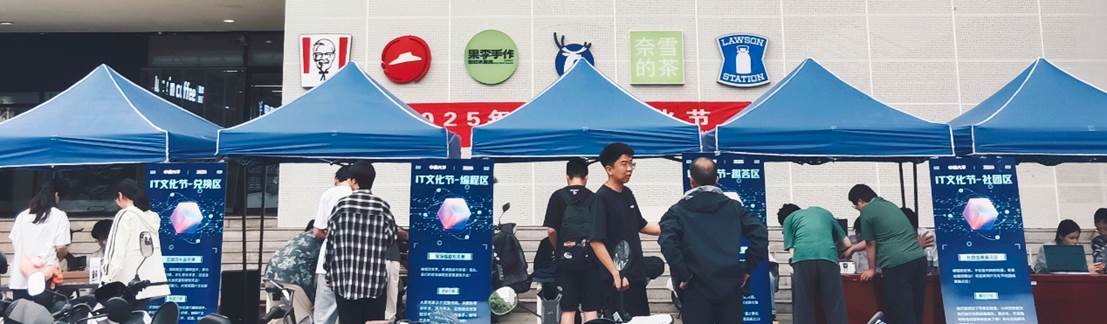 随后,IT文化节游园会环节如火如荼展开。本届IT文化节游园会共分为5个主题摊位:现场编程区、趣味问答区、社团成果区、竞赛咨询区、打卡抽奖区。
