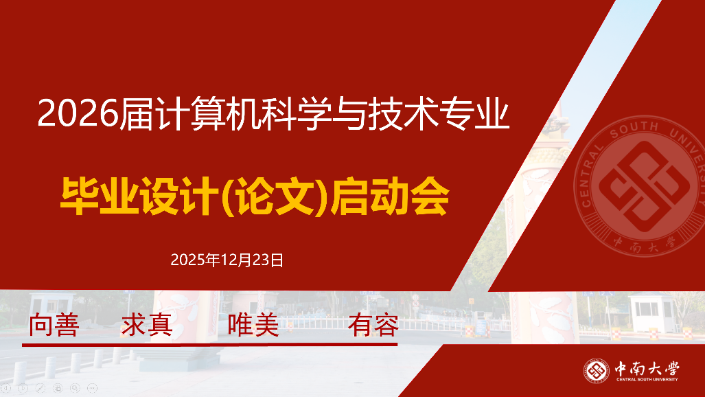 为稳步推进2026届计算机科学与技术专业毕业生相关工作,引导员工明确方向、规范流程、严肃学风,计算机科学系于12月23日下午在科教南楼202教室组织召开毕业设计启动会。学院教师代表及该专业全体毕业生参加会议。