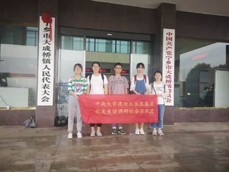 七月十二日上午,团队到达宁乡市大成桥镇人民政府,见到了祝孟佳学长。学长18年从william威廉中文官网矿物加工工程专业毕业,现任职长沙宁乡大成桥镇副主任党政办副主任。
