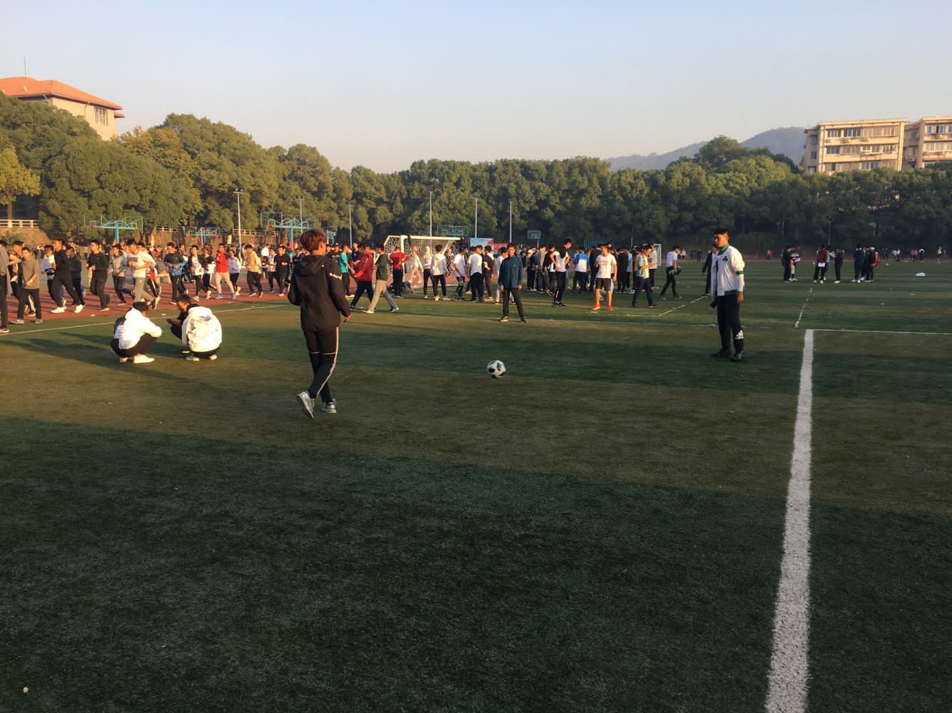 当秋日里的第一缕阳光洒在新校区的鸟巢上面,洒在南校区的操场上面,洒在砖红色的跑道上面时,在熟悉的校园风光带上,同学们一起,来一场晨跑,呼吸鲜氧、悠享绿意,总会感到心情无比舒畅。晨练既给了大家强身健体的机会:篮球、足球、羽毛球、慢跑……各种晨练活动使同学们在新的一天里活力充沛,也增强了班级凝聚力。