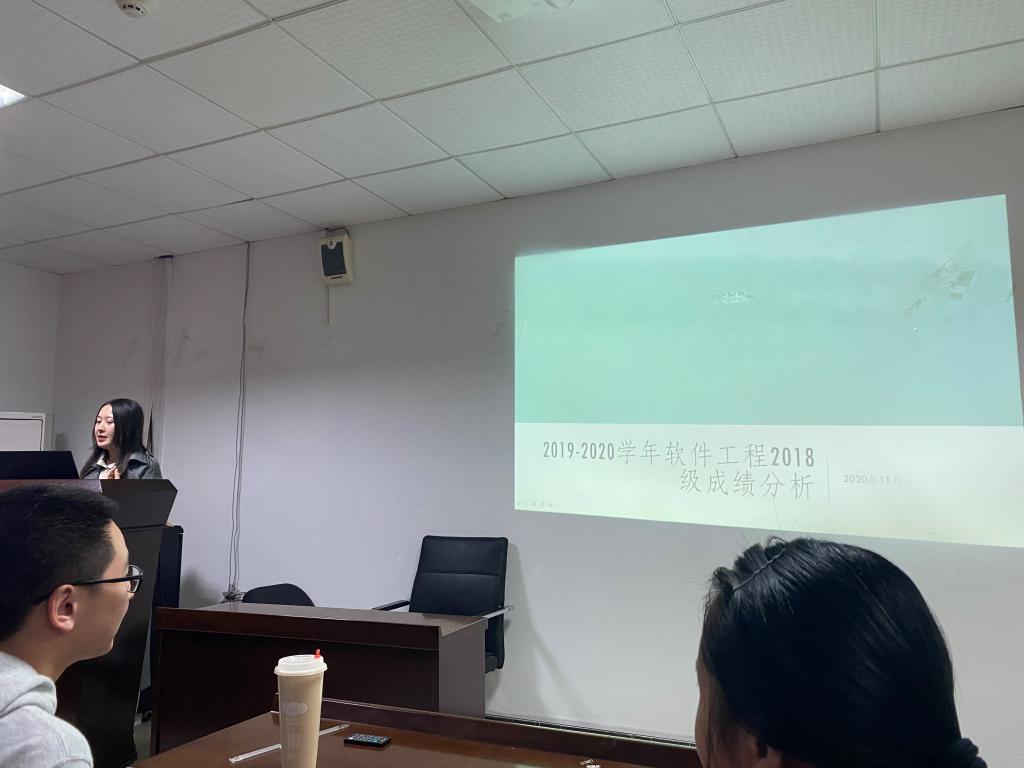在学长学姐的分享经验后,由王睿卿老师对专业上一学年的成绩进行了学情分析,总体来说软件工程18级2019-2020学年成绩良好,各班平均成绩较上一学年都有进步,也有零挂科班级。通过学情分析让大家对年级、班级和自身的情况有更好的了解,明确下一步的年级学风建设方案和个人学习目标。同时王睿卿老师对同学们提出了三点要求:一、认真对待课程学习,提升专业水平;二、提早进行职业规划,做好准备工作;三、积极提升自身状态,保持积极自信。