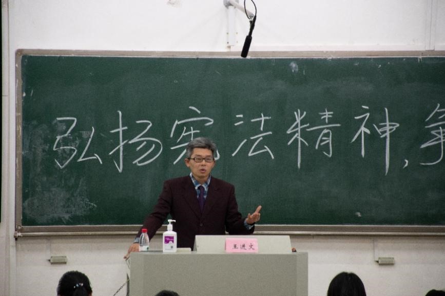 随后,王进文副教授给同学们做了一场生动有趣、深入浅出的普法讲座,从“立国、立宪、立人、立教”的维度阐释了宪法的发展和宪法与我们的联系,强调了同学们要懂法守法,依法而行,既要行使权力,又要履行义务。