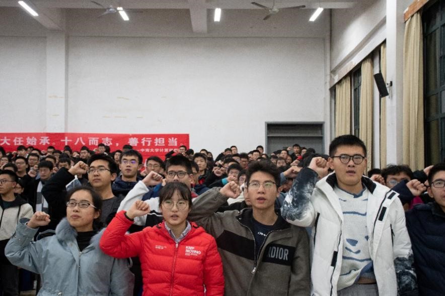 接着,软件工程2005班王翰毅作为新生代表发言。向学校、父母表达深深的感恩之情并且做出努力学习、不负青春使命,做一个有理想、有本领、有担当的新时代青年的承诺。在他的带领下,全体员工面对国旗庄严宣誓: